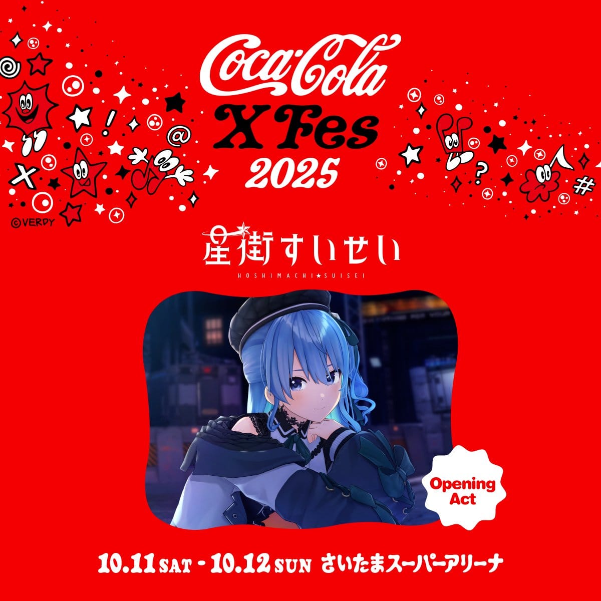 - Hoshimachi Suisei will perform the opening act at Coca-Cola X Fes 2025. The blue comet of Hololive JP's Generation 0, will sing on October 11 - 12 at Saitama Super Arena. (CocaCola. JP)